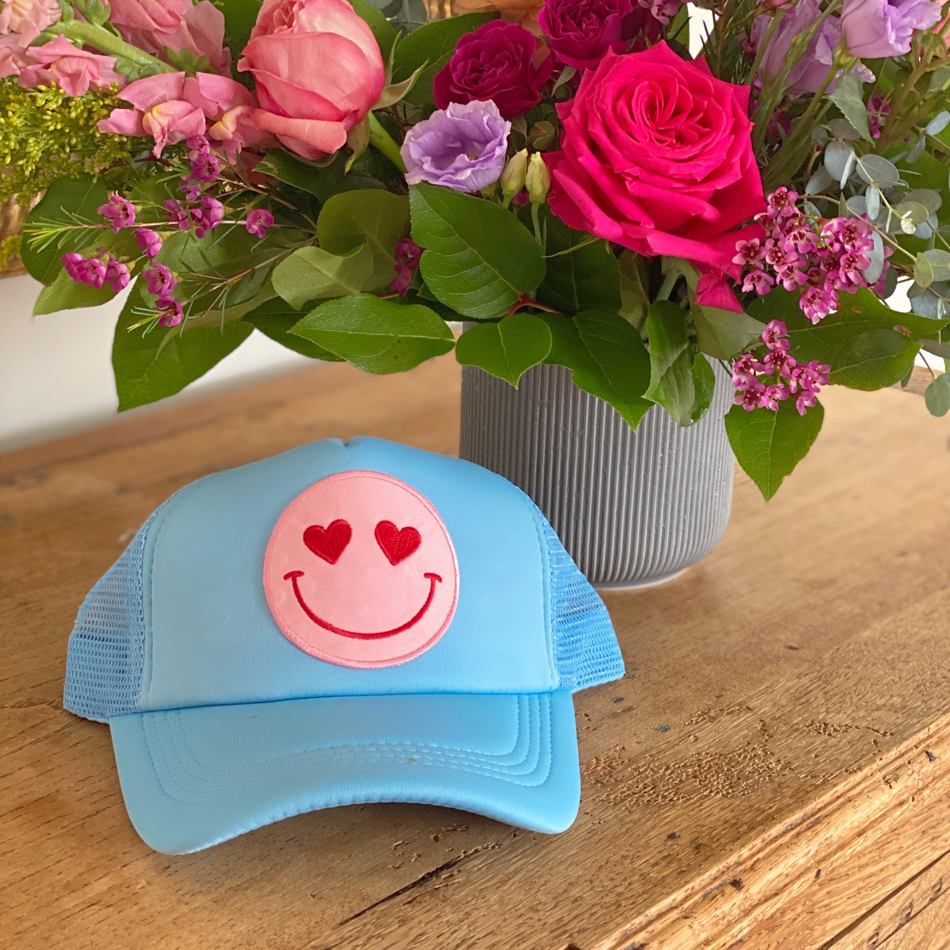 Happy Heart Trucker Hat by Confettees - Columbia Blue