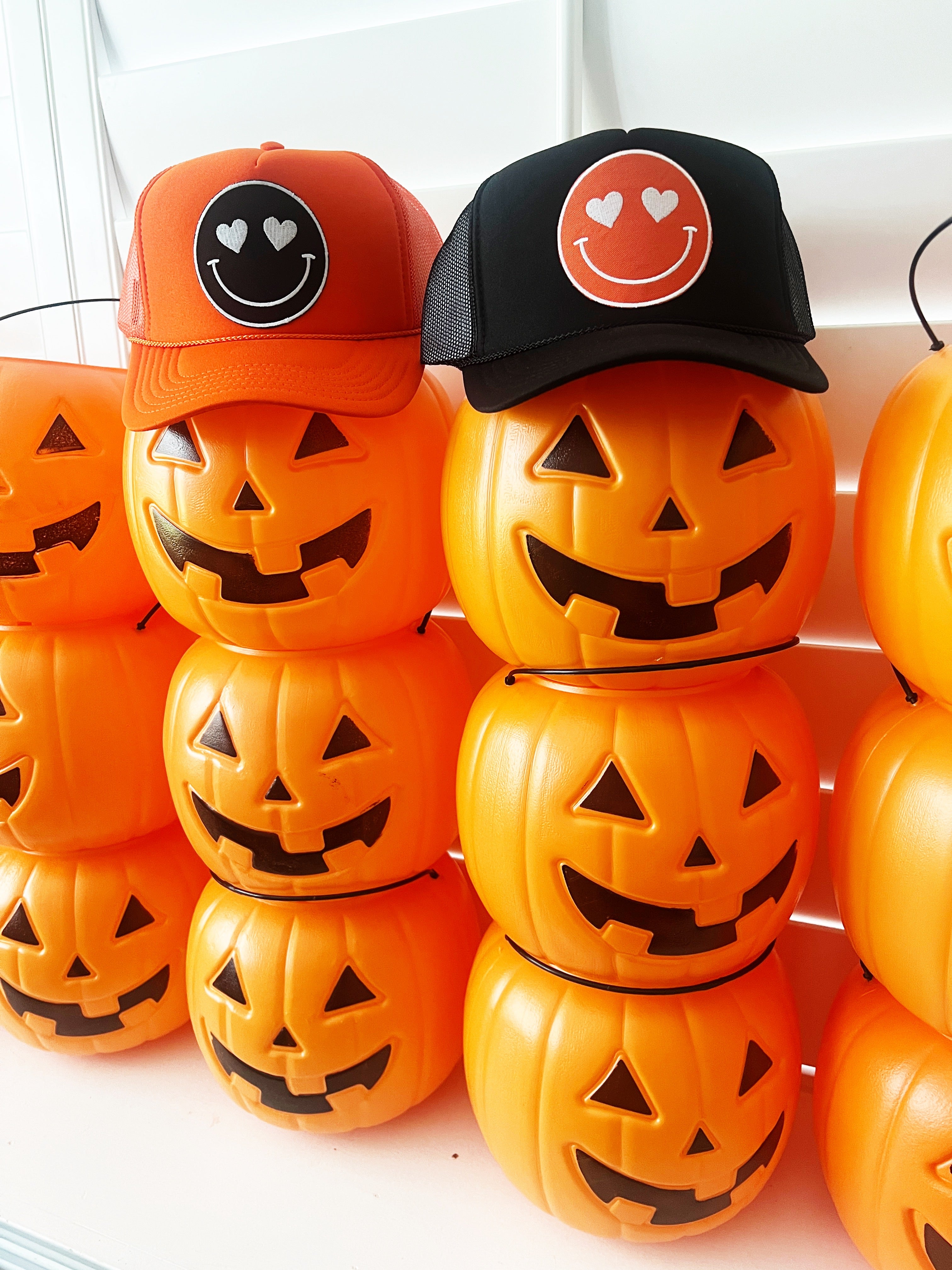 Hocus Pocus! Happy Heart Trucker Hat by Confettees - Orange w/Black